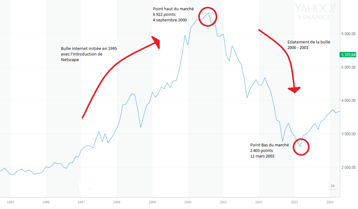 Axe Conseils Patrimoine, cabinet de gestion de patrimoine spécialisé dans les investissements financiers à Sainte Adresse, 76310, vous a présenté la bulle internet des années 2000.