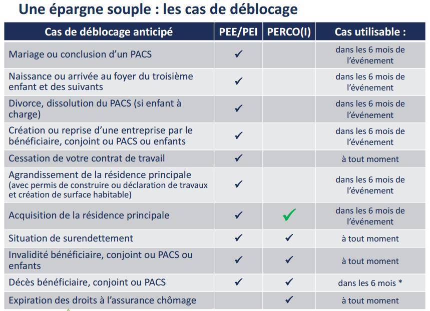 Il existe toutefois plusieurs cas permettant le déblocage anticipé de l'épargne. (voir photo ci-contre)